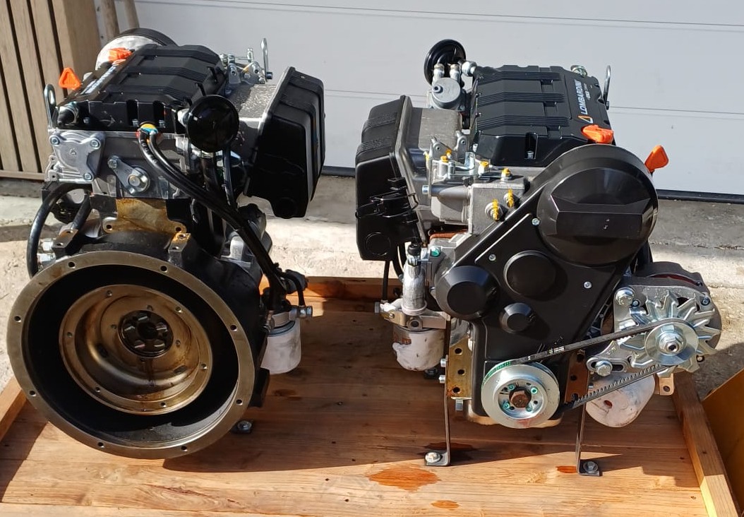Mit 24 Volt Startsystem (Lichtmaschine und Anlasser) - Kann natürlich mit den Teilen aus Ihrem Altmotor auf 12 Volt umgerüstet werden.