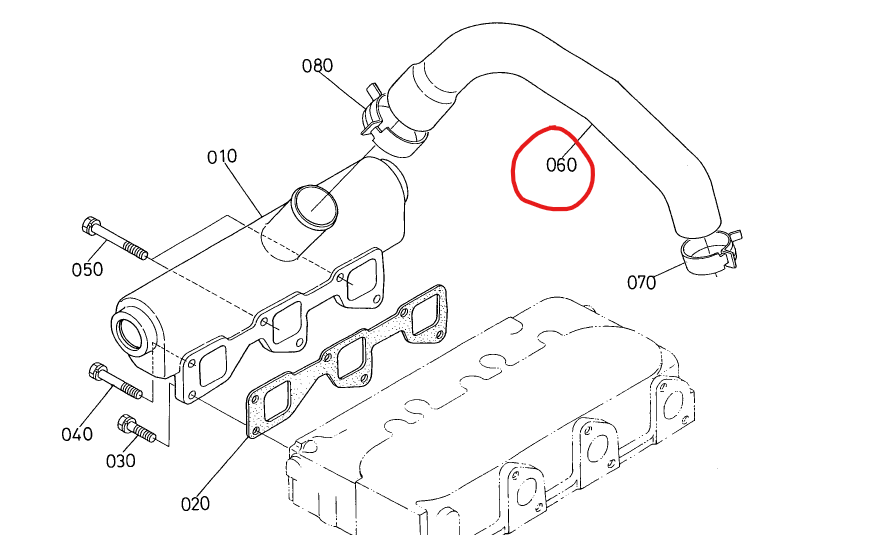 Kubota Turboschlauch vom Ansaugkrümmer zum Turbolader (Originalteil)